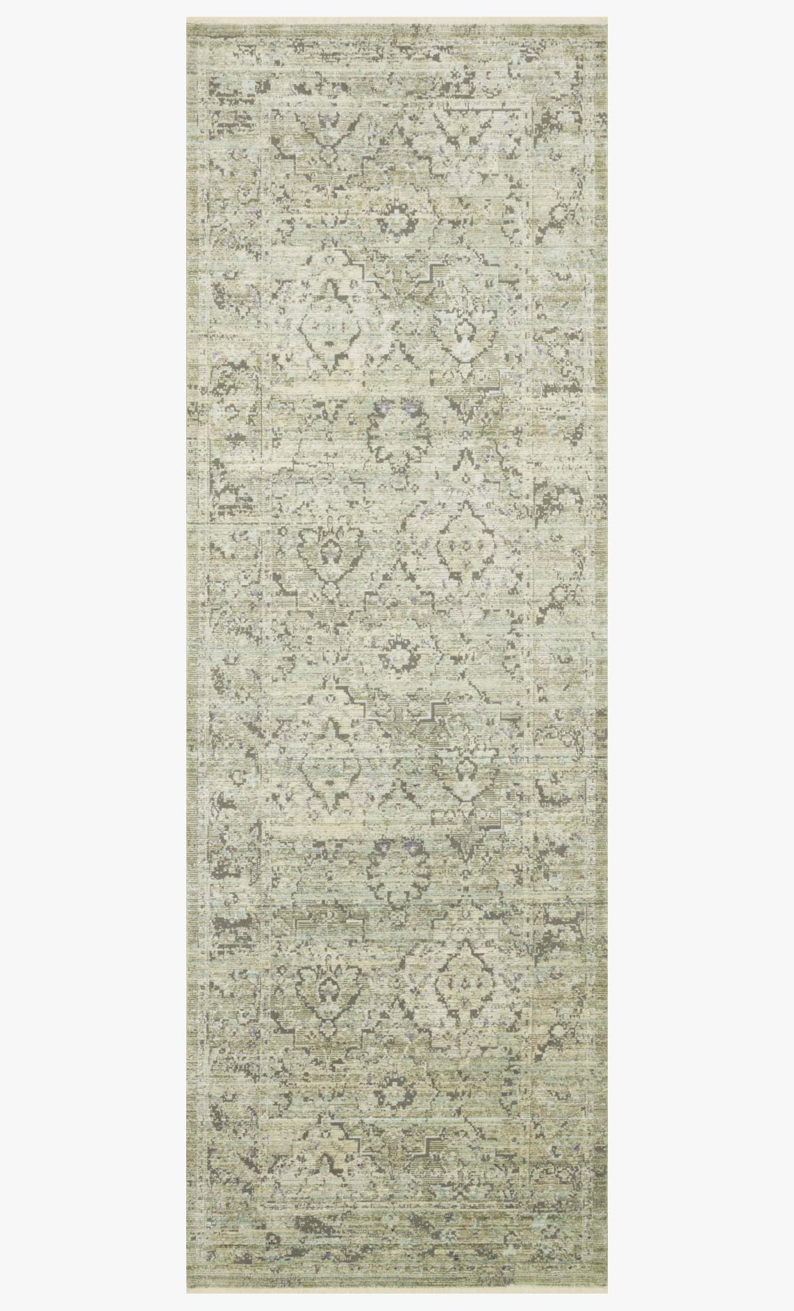 Striking and sophisticated, the jewel-toned Ophelia Collection for Magnolia Home by Joanna Gaines reimagines historic patterns in a color palette for today. Power-loomed of rayon and polyester, the collection balances hues of soft blue, gold, berry, and grey. Crafted by Loloi.
